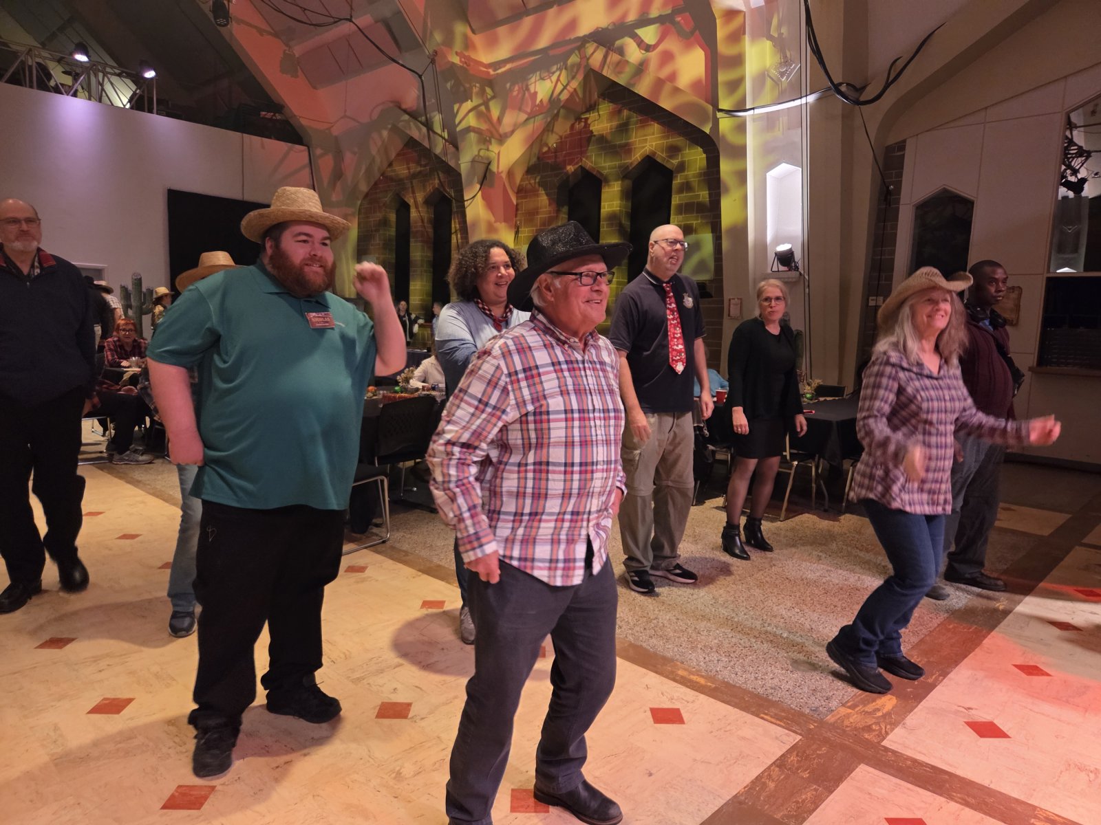 Le 11 décembre dernier, nous avons vécu une magnifique soirée en compagnie de nos membres. Un généreux festin traditionnel attendait nos convives, créant une ambiance des plus conviviales. Sous le thème western, nos invités ont eu énormément de plaisir à suivre une initiation à la danse country offerte par nos spécialistes, Marie‑France et Joseph‑Antoine, et à participer à un jeu. Une soirée mémorable du début à la fin!